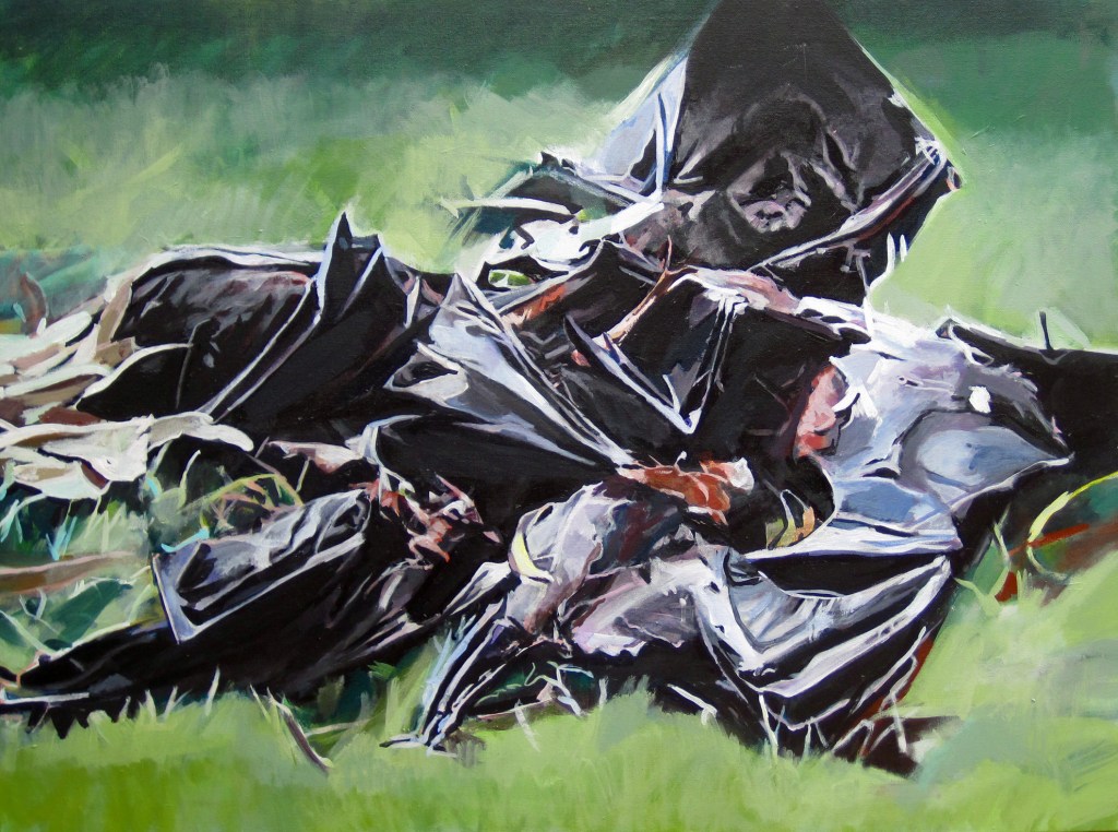In 2014 , the Brown Bat population of Nova Scotia was decimated by “white nose fungus”; 95% of the population was wiped out and even since have been making a modest recovery, what one scientist called a “small r recovery. At the same time, I read about incidents in Australia where mysteriously , bats were falling from the sky, dead. At the time I did a Painting of the fallen bats.
