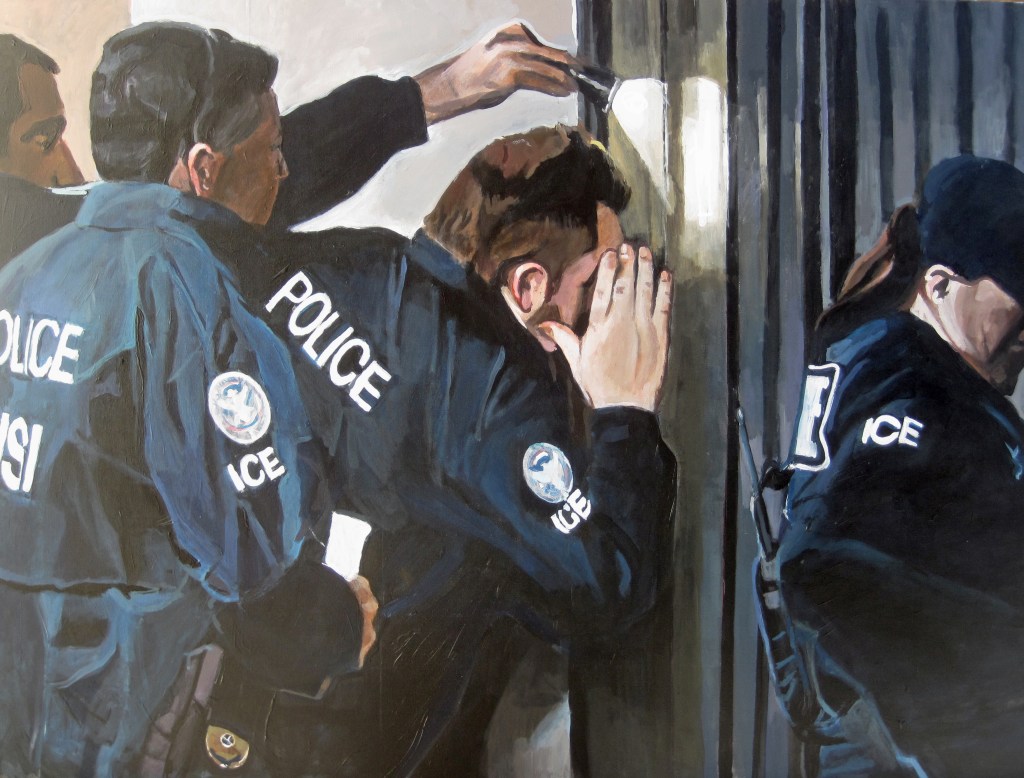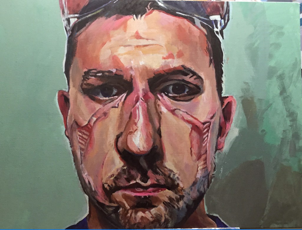 This painting , which I had forgotten about in storage came to mind when I was reading about the Wuhan Markets that were selling ( secretly ) endangered Pangolins , that might have been infected with Covid-19 through the bite of a bat. Americans were railing against the Chinese for “eating bats” ,even though many in the rural areas eat squirrels and opossum. The Pangolin, which resembles an armadillo , also eaten in the Southwest, has been called an artichoke on four legs because one eats the scales. Perhaps a future painting