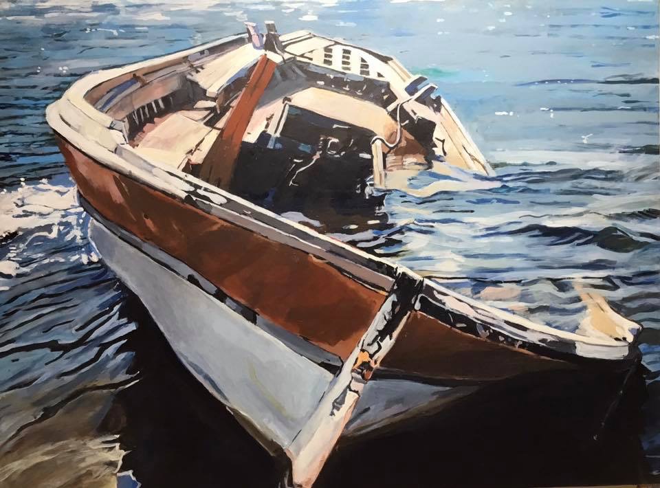 Painting as Metaphor: I began a series of paintings seeking images of natural events that would symbolize the current crisis brought about by Global Warming. My first painting was Brushfire, done during the Australian Fires; The second was a boat taking on water at once a common site in Nova Scotia but also a portend of the oceans rising.